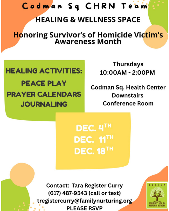 Codman Sq and CHRN Team: Healing & Wellness Space (Survivors of Homicide Victims Awareness Month)