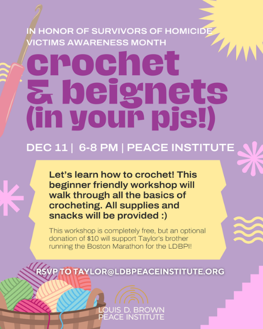 Crochet & Beignets in Your PJ’s! (Survivors of Homicide Victims Awareness Month)